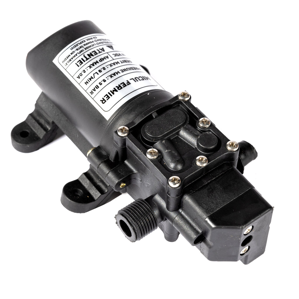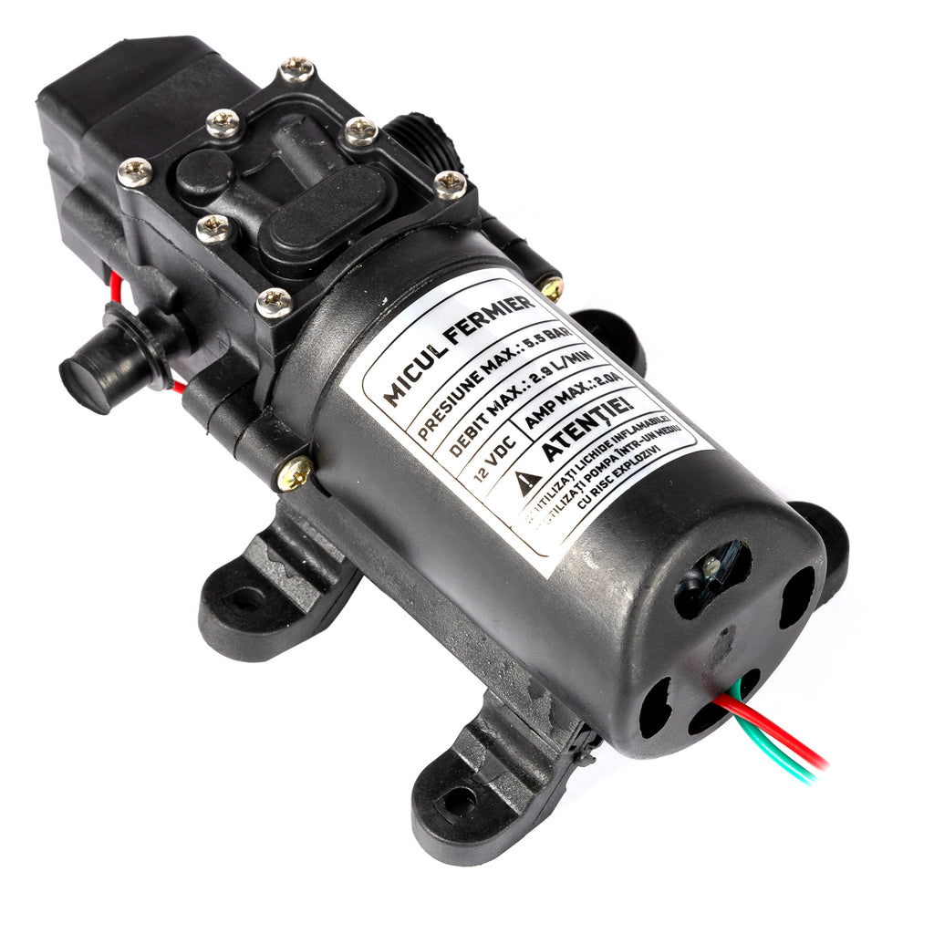 Тази Помпа за налягане/пръскане MF с резба G01 е с максимален дебит 2,9 литра/минута и работно налягане 5,5 бара. Конструкцията ѝ позволява лесна интеграция в различни пръскачни системи, където е важно надеждното свързване и поддържането на постоянно налягане. Благодарение на компактните размери и обикновената резбова връзка, тя е подходяща за акумулаторни и ръчни пръскачни модули.
