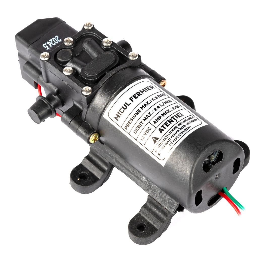 Тази Помпа за налягане/пръскане MF със скоба G01 има максимален дебит от 2,9 литра/минута при работно налягане от 5,5 бара. Конструкцията ѝ позволява бърз и лесен монтаж чрез скобова връзка. Благодарение на компактния си размер и лесното свързване, тя е подходяща за използване в системите на различни ръчни или акумулаторни пръскачки.