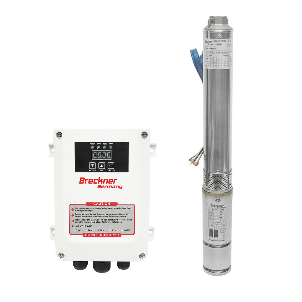 Тази потопяема водна помпа 600W, 48V дебит 3.5m3/h, D75мм с контролер за соларен фотоволтаичен панел Breckner Germany със серийна връзка може да се използва с 2 200 W, 36 V соларни панела, мощност 600 W, захранващо напрежение 48 V, дебит 3,5 m3/h, скорост 1000 - 4000 об/мин, диаметър на помпата 75 мм и дължина 640 мм.