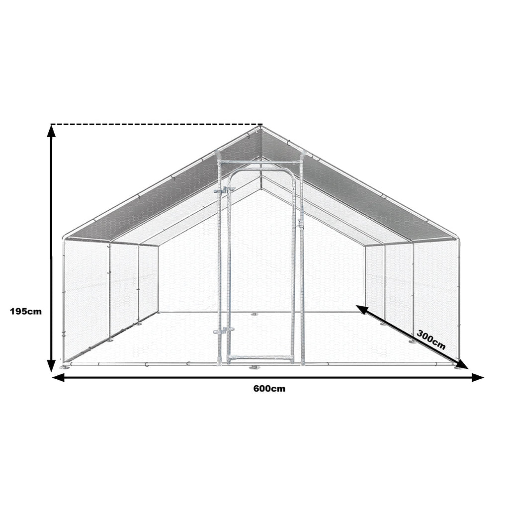 Размерите на тази поцинкована стоманена външна къщичка за птици са 600 x 300 x 195 см, а покривният материал е водоустойчив брезент.