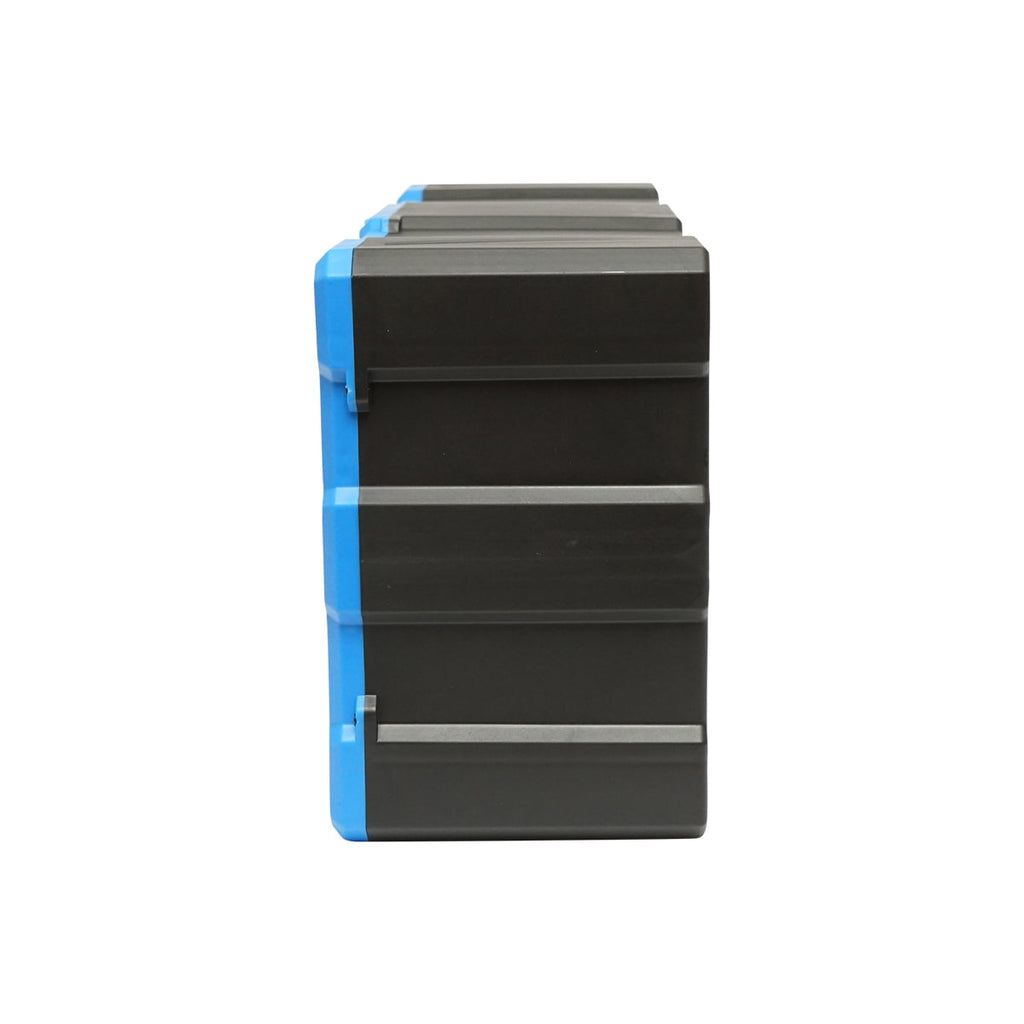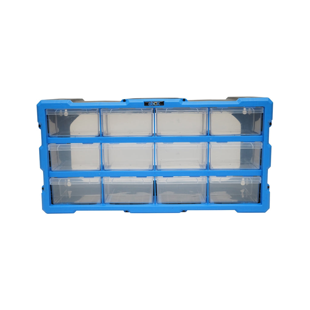 Тази синя пластмасова модулна кутия за съхранение, 12 чекмеджета 497x157x250мм Breckner Germany има 12 чекмеджета с размери 153 x 110 x 58 мм.