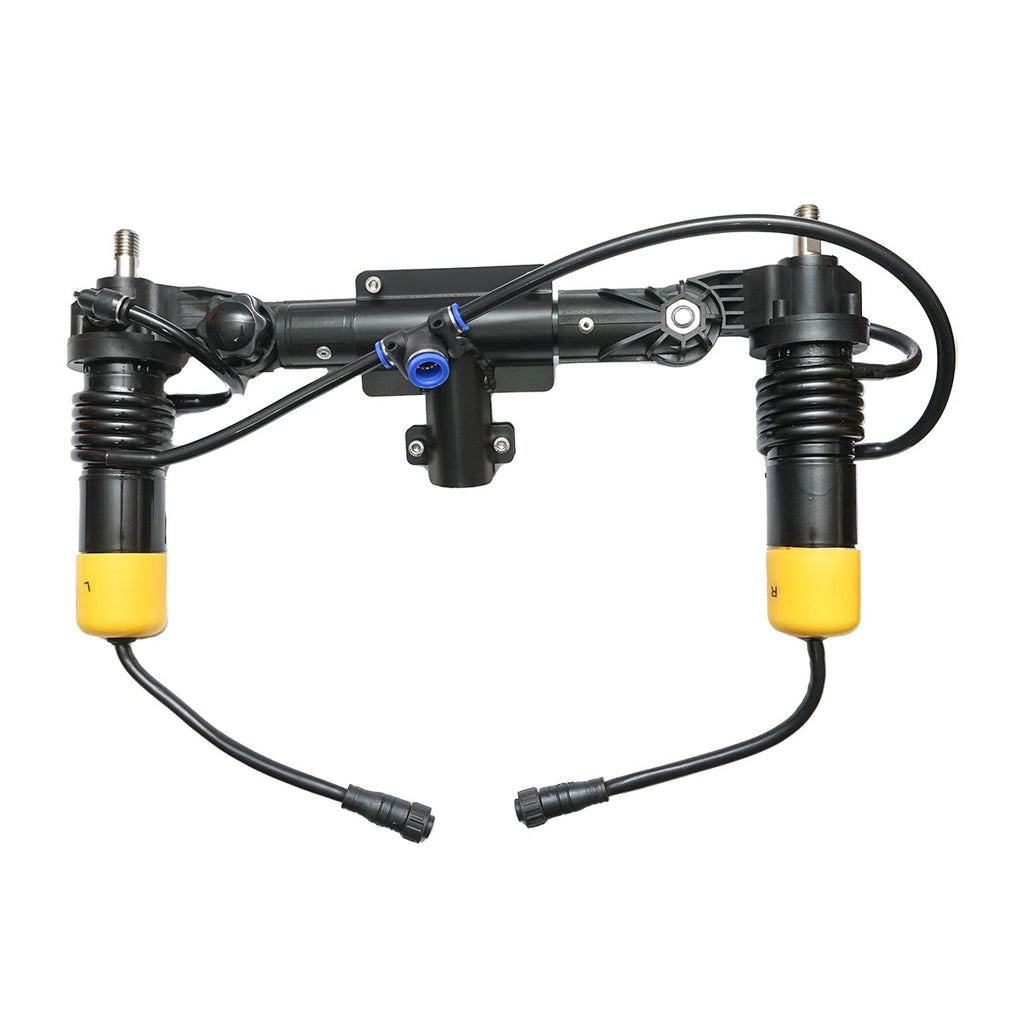 Тази система за почистване на фотоволтаични панели с 2 четки и дръжка до 5,5 м е оборудвана с литиева батерия с капацитет 26 Ah, напрежение 24 V, ток на зареждане < 5 A, размери 240 x 118 x 91 мм и тегло 3,6 кг. Телескопичното рамо е изработено от алуминиева сплав и е с дължина 5,5 м. Моторът е с мощност 240 W, захранващо напрежение 24 V и скорост 320 об/мин. Въртящите се четки са изработени от найлон и са с диаметър 300 мм.